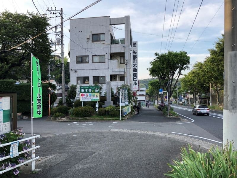 信号付近の当墓苑看板・観音様・石碑がある路地へ