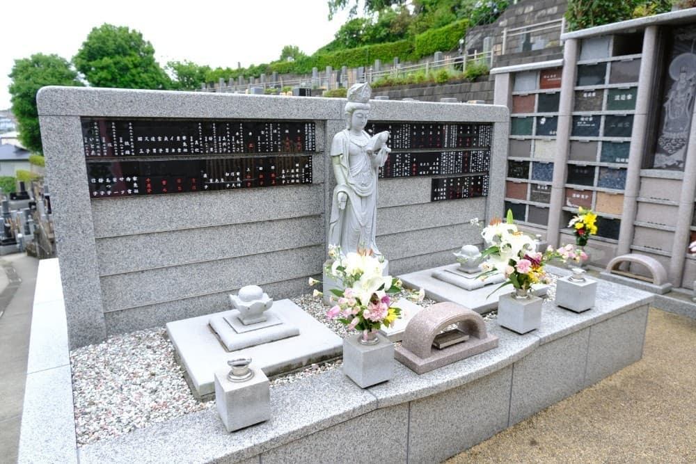 散骨埋葬型墓地「なごみ」は観音様の下にある納骨棺に直接ご遺骨を散骨合祀埋葬するお墓です。